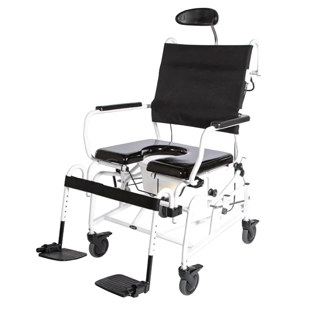 Designed for users with special positioning needs, featuring elevating leg rests and swing-away adjustable laterals for maximum comfort and custom support. Includes dual locking casters, arm troughs, full belts, and head support. Excellent for users requiring advanced positioning, therapeutic adjustments, or frequent transfers. Default seat: Comfortuff Front/Rear Open Seat.