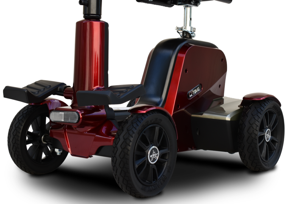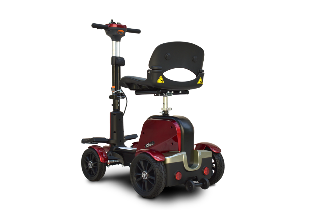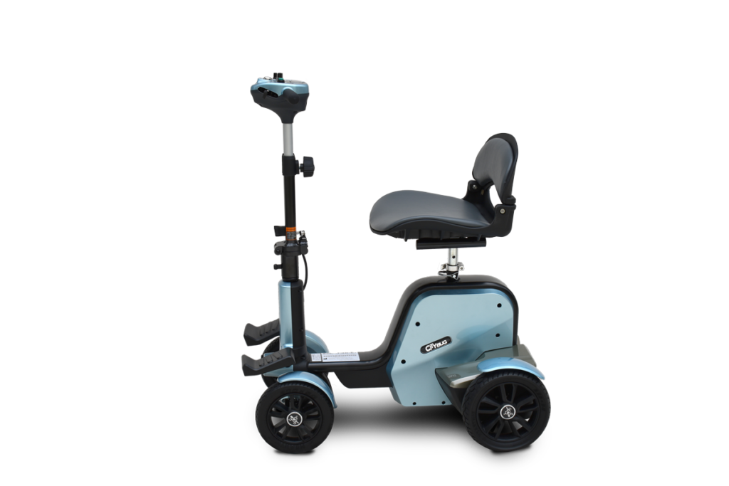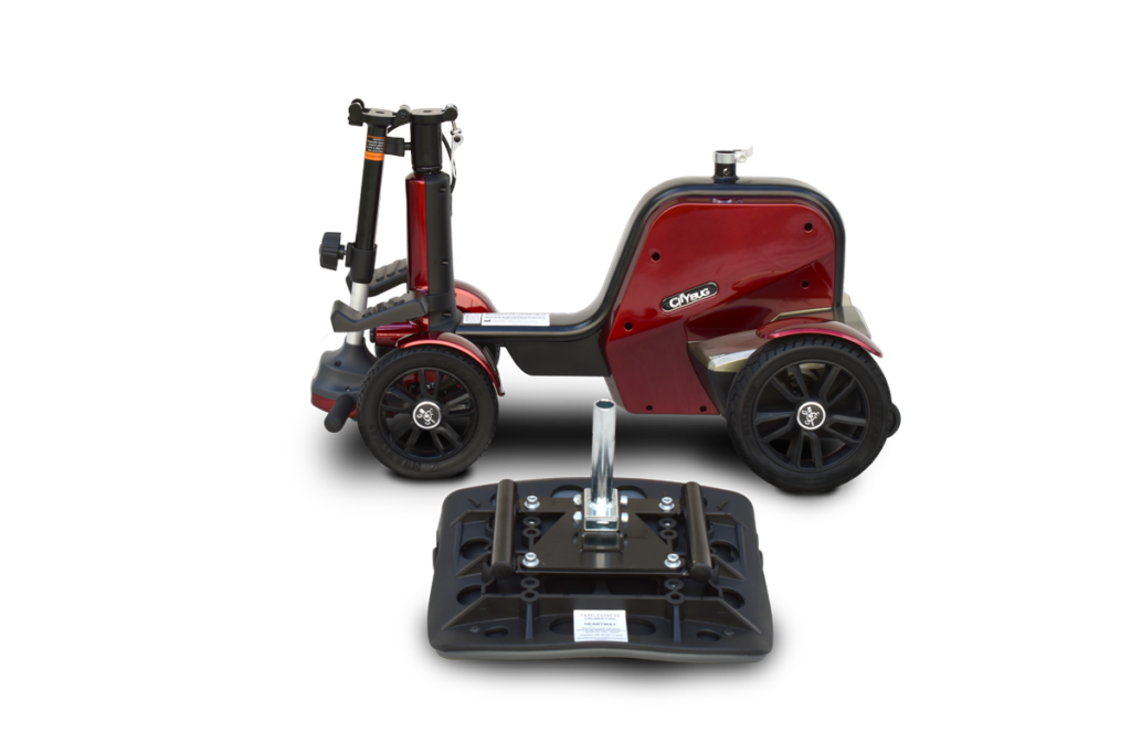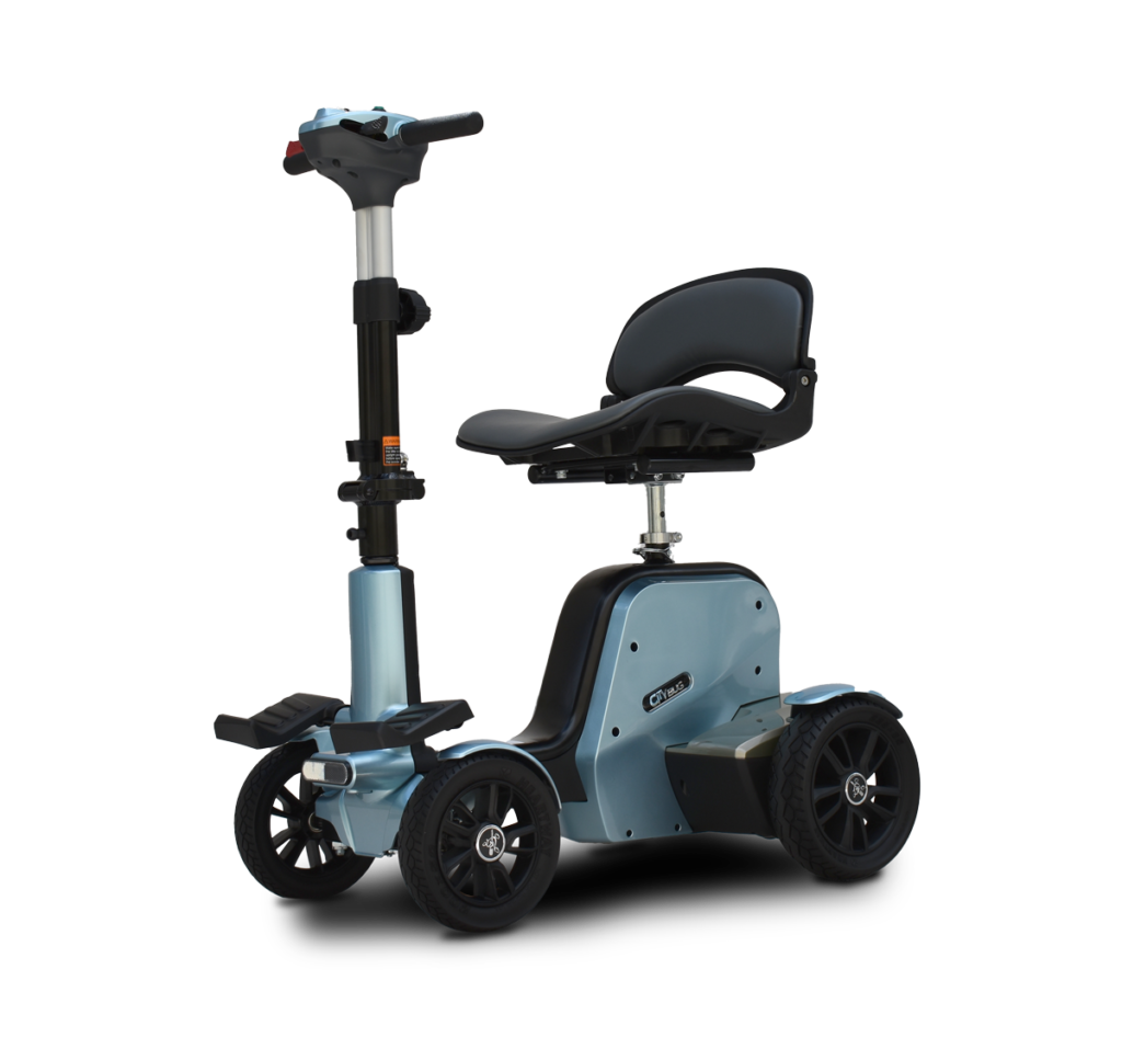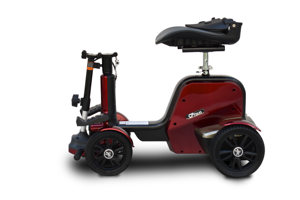 The CityBug is a unique and compact scooter ideal for in-home use and outdoors. It folds down to 20” in height, 20” in width and 34” in length making it easier to store in small spaces. The seat sits up higher and provides better eye contact and better access to counters at home or in the office setting. The scooter’s overall length (32.5 in.) makes it very maneuverable and allows it to perform very well in confined spaces or tight quarters with a very tight turning radius, and it is beautifully powered with a very powerful 270-watt motor/transaxle as well as fitted with two 12v12Ah SLA batteries approved for airline travel.